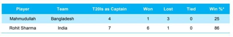 Mahmudullah, on the other hand, achieved his first win as captain of Bangladesh's T20I side when they defeated Sri Lanka in a thriller of a contest on March 10.
