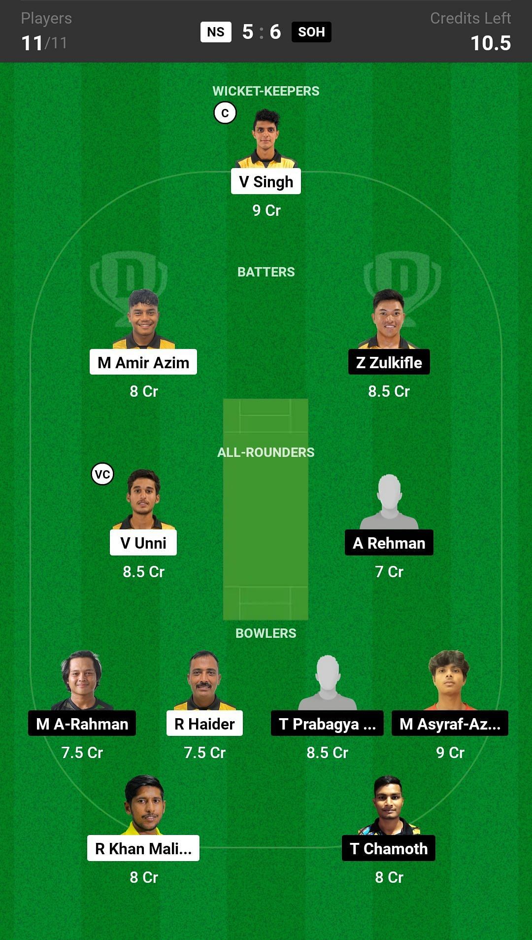 M Amir and Z Zulkifle are the two best batsmen picks for the Dream11 team. S Muniandy played exceptionally well in the last series, so he is also a good pick for today's Dream11 fantasy team.