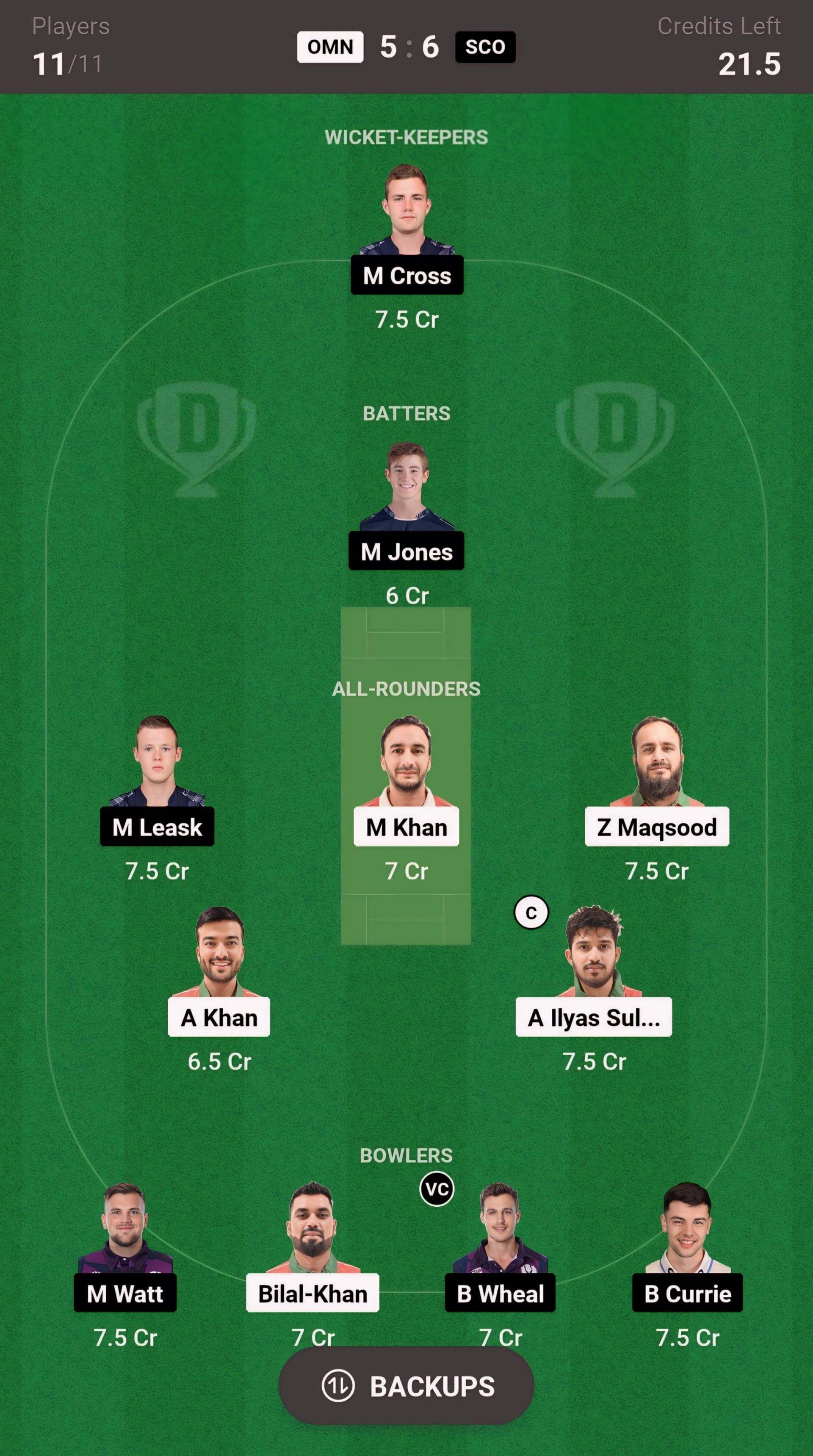 Oman vs Scotland Dream11 Prediction Today, Grand League