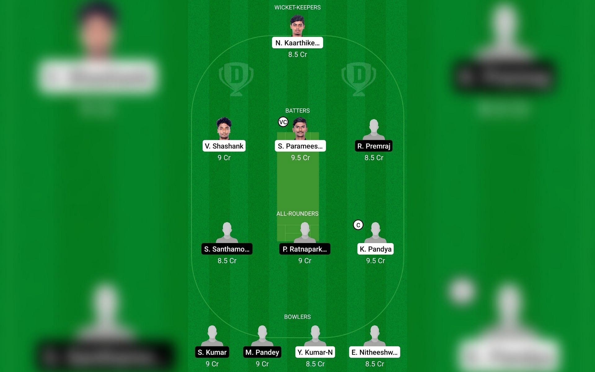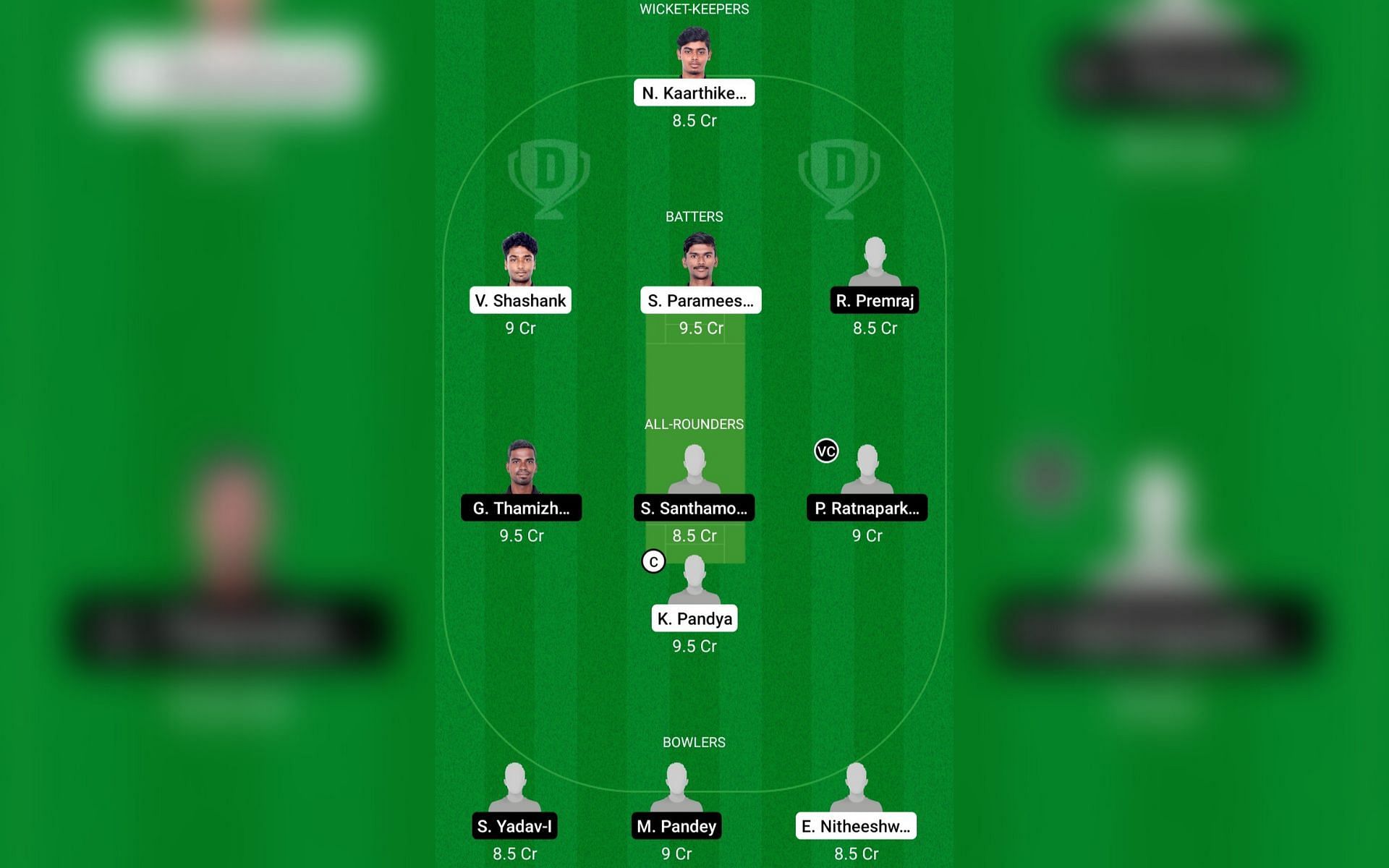 K Pandya and P Ratnaparkhe: K Pandya and P Ratnaparkhe are the best all-rounder picks for today's match as they are performing exceptionally well with both bat and ball. S Santhamoorthy and G Thamizamani are the other two good picks for the Dream11 team.