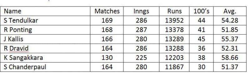 Also, the table makes it clear that he was West Indies’ highest run scorer of his era. The closest Caribbean batsman to Chanderpaul is Lara, who ranks at number seven with 11012 runs.
