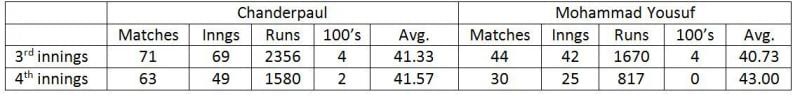 Both batsmen average more than 40 in the 3rd and the 4th innings of Test matches which is an astonishing achievement. The performances in this segment present no clear winner as both batsmen have almost identical stats.