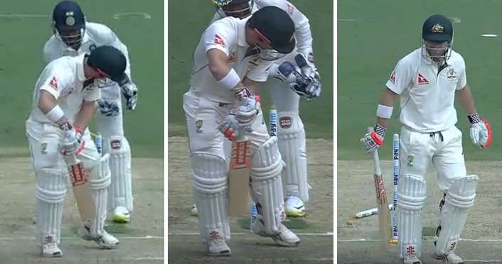 With a ball that just completely squared up Warner, the off-spinner uprooted the southpaw’s off-stump and got India the breakthrough that they were craving for at the start of the day to stay in the match.