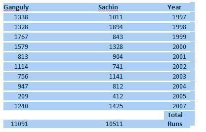 Since 1997 to 2007, a decade of India’s finest opening pair, Tendulkar scored 10511 runs, whereas Ganguly scored 500 runs more than Tendulkar and i.e. 11091. I’ve always been a stat-crazy cricket fan, records say the world to me and if this isn’t one of the most unique records out there, which is!