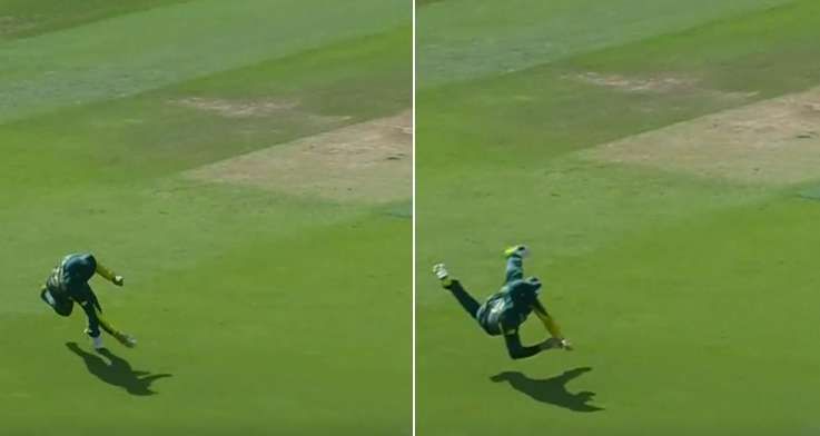 But AB de Viliers quickly anticipated that and dived to collect the ball and in one sweeping motion quickly picked it up and threw down the stumps. Chandimal, clearly didn’t anticipate that piece of extraordinary fielding as he was a foot short of his crease.