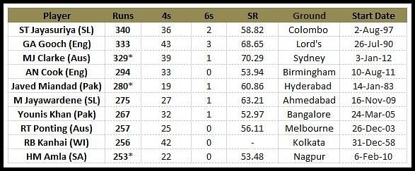 Sri Lankan opener Sanath Jayasuriya holds the record for the highest score against India in an innings in Tests. The destructive left hander piled on 340 against a beleaguered Indian bowling attack in 1997. Graham Gooch’s 333 at the Lord’s is still regarded one of the best Test innings ever played.