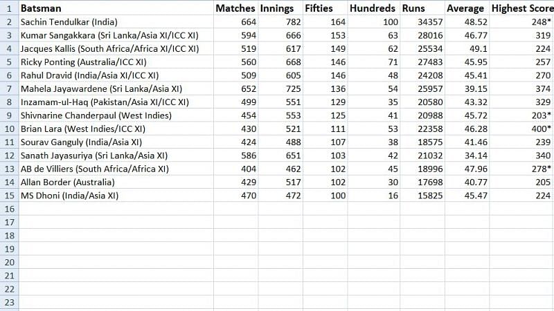 Here are those 15 batsmen who have managed to score 100 or more half-centuries at the international level. Among active players, West Indies giant Chris Gayle appears likely to enter the distinguished club sooner rather than later. He currently has 97 fifties across all formats combined. The likes of Hashim Amla and Virat Kohli are on 75 half-centuries at the moment while England's Test specialist Alastair Cook sits on 74 such scores.