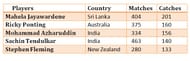 Here is a list of players who have taken the most number of catches in the history of One Day International cricket. Wicketkeepers are not taken into consideration for obvious reasons. While all the four players who follow Mahela Jayawerdene, who is at the top by a good distance, have retired, it looks like the former Sri Lankan captain who is still very much a part of the Island nation’s plans will continue to hold the record for a very long time to come.
