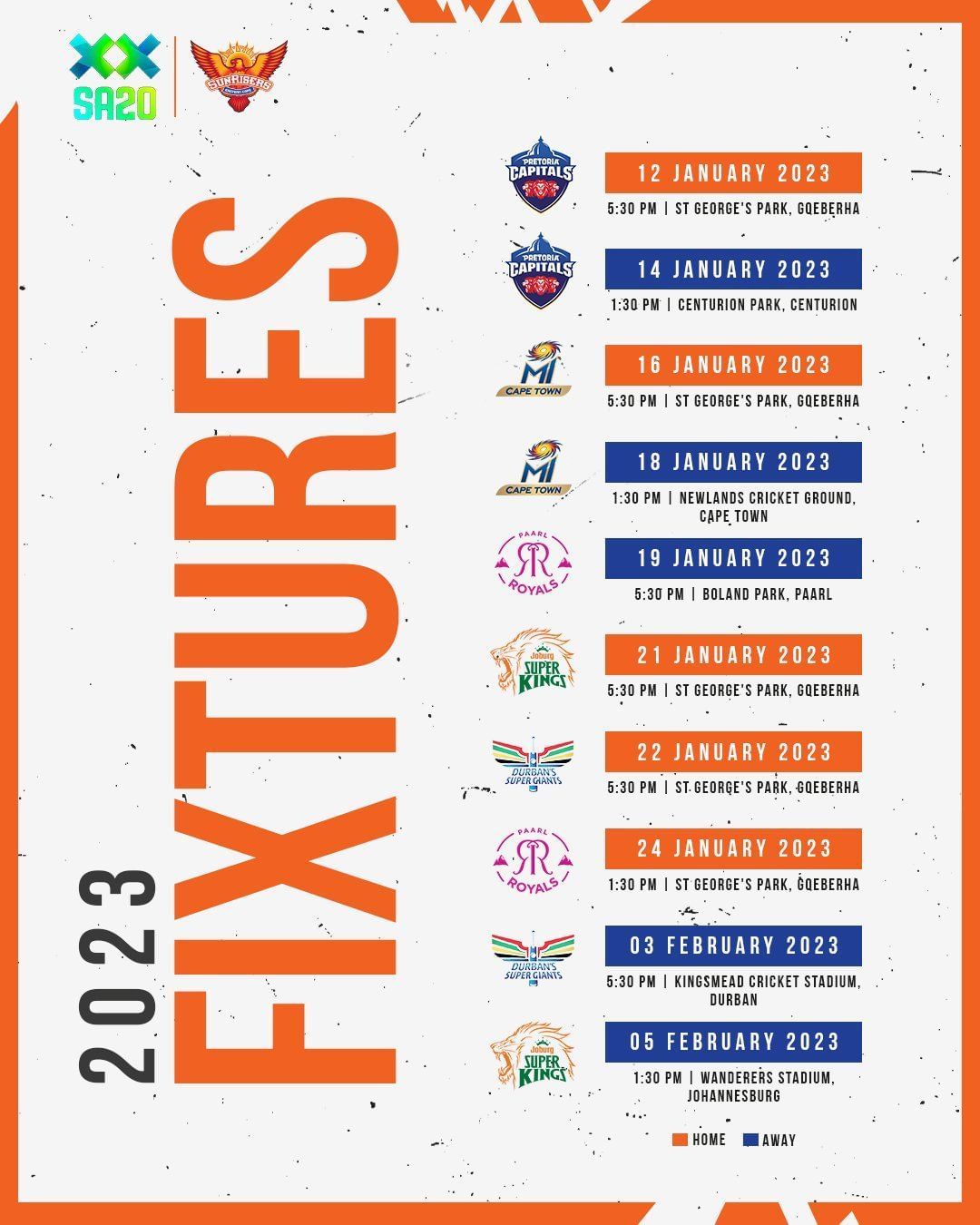 05-Feb-23 | Sunday | 1.30 PM | Sunrisers Eastern Cape | Joburg Super Kings | Johannesburg |