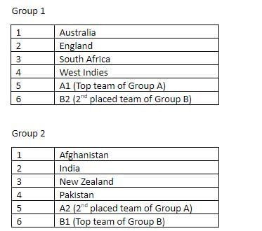 The top two teams from Group A and Group B will qualify for the Super 12 round.