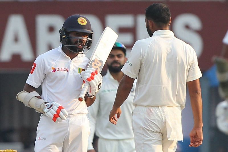 However, if words could win you games, cricket would have a different context. Shami was fired up, he zoomed in, bowled a perfect in-ducker. The ball pitched in and swirled past the attempted flick of Chandimal. Five wickets down!