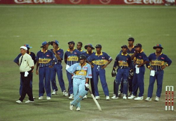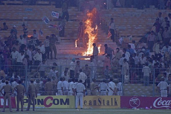 As the Indians hurtled towards an embarrassing defeat, the Eden Garden crowd could not quite take it any longer and started to burn the stands. Objects were thrown at Sri Lankan fielders and captain Ranatunga had to call his players back and the match was stopped. Soon, when play was no longer deemed possible, match referee Clive Lloyd suspended the match and awarded it to its rightful owners, the Sri Lankans as the Indian score read a hopeless 120/8.