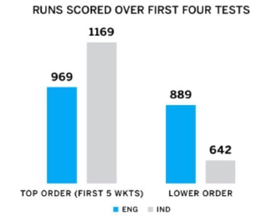 This suggests that the three top-order batsmen in all three overseas tours have more often than not, been walking wickets. Alastair Cook was terribly out of form, Finch and Jennings have been two breathless fishes out of their aquarium, Harris hasn’t seemed to belong in the highest level of cricket. So maybe, as much as we attribute these incredible statistics to India’s bowlers' supreme skills, there is also a demand for an appropriate understanding of the malaise of all three top orders.