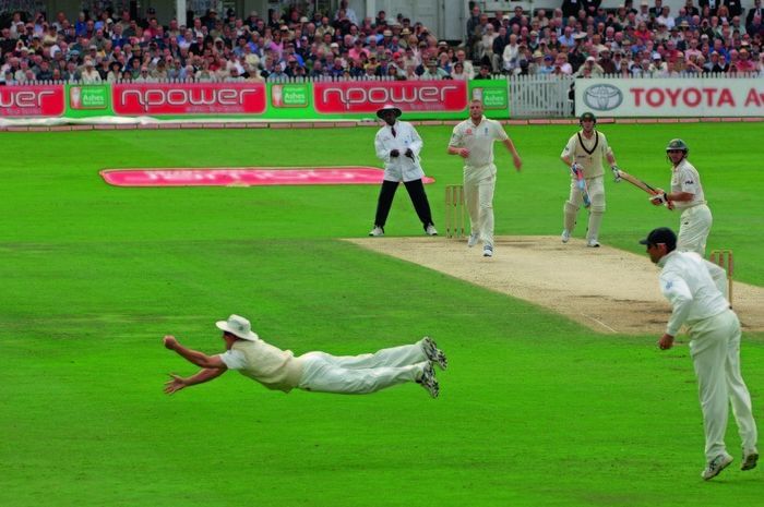 He has also taken a few blinders in the slip cordon. One such blinder was taken during the 2005 Ashes to dismiss the dangerous Adam Gilchrist. Standing at second slip, Strauss flew across to grab a thick outside edge which went flying towards the vacant third slip area.