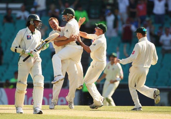 Despite Shane Watson's flamboyant 97, Australia were down and out against Danish Kaneria, having lost eight wickets with their lead only amounting to 51. Mike Hussey, the ultimate man to manage a disaster, scored an unbeaten 134, supported by Peter Siddle's 117 ball vigil for 37 runs.