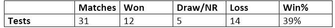 Though Kumble's captaincy record is not much to boast of, with just three wins from 14 Test matches, he stepped in at a difficult time for the side, who were looking for options with Sachin Tendulkar opting out of the race while MS Dhoni was still deemed not ready for the role in the longest format.
