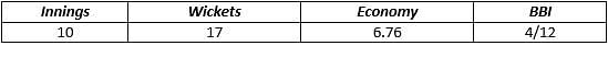 Touring India last October for T20Is, he made everyone take notice of him by bowling a match-winning spell, scalping big-fish Virat Kohli, Rohit Sharma, Shikhar Dhawan and Manish Pandey. Perhaps this made Mumbai Indians buy him for a bargain price of ₹ 1.5 crores.
