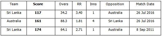 Quite surprisingly, Sri Lanka have the unwanted record for the lowest score in an innings at Pallekele. Their disappointing performance came against the mighty Aussies in 2016. It was the first game of the three-match series and the hosts were bundled out for 117 in the first innings.