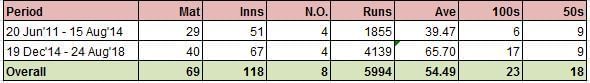 Steven Smith averages more than 74 in this period, but there is an interesting caveat to this difference.