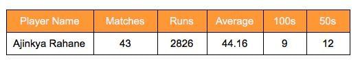 The vice-captain of India in Tests, Ajinkya Rahane has bailed out India from several tough situations with his calm head and calculated batting. He plays spin extremely well - a trait that is required for a batsman batting at No. 5. Against the fast bowlers, Rahane plays the short ball really well and thus was instrumental in the team's best performances on bouncy pitches.