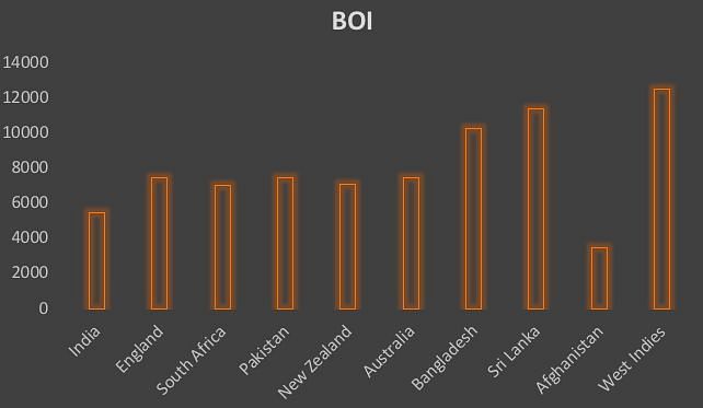 Then, the product of the of the bowling averages, strike rates and economy rates will be calculated, and will be designated as BOI (Bowling Index). This metric will rank the teams according to their bowling in the last two years.