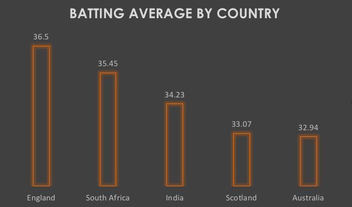Australia seems to be struggling with run-scoring, probably due to the absence of Steven Smith and David Warner. Meanwhile, Afghanistan's rapid rise, it seems, can only be attributed to their splendid spin bowling; their meagre batting average of 23.85 tells us that they cannot compete with the likes of England and India.