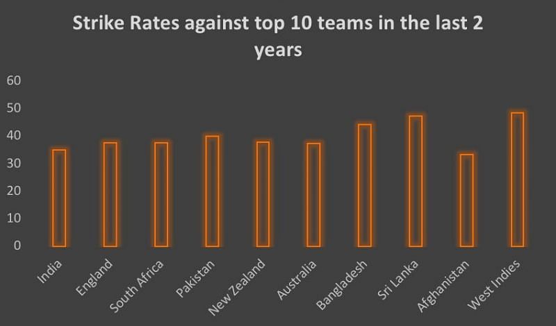 It is no surprise that England leads this metric with an astounding strike rate of 98.57. Such has been the scale of their ODI transformation, that they have built a team culture that involves a fearless and carefree batting approach.