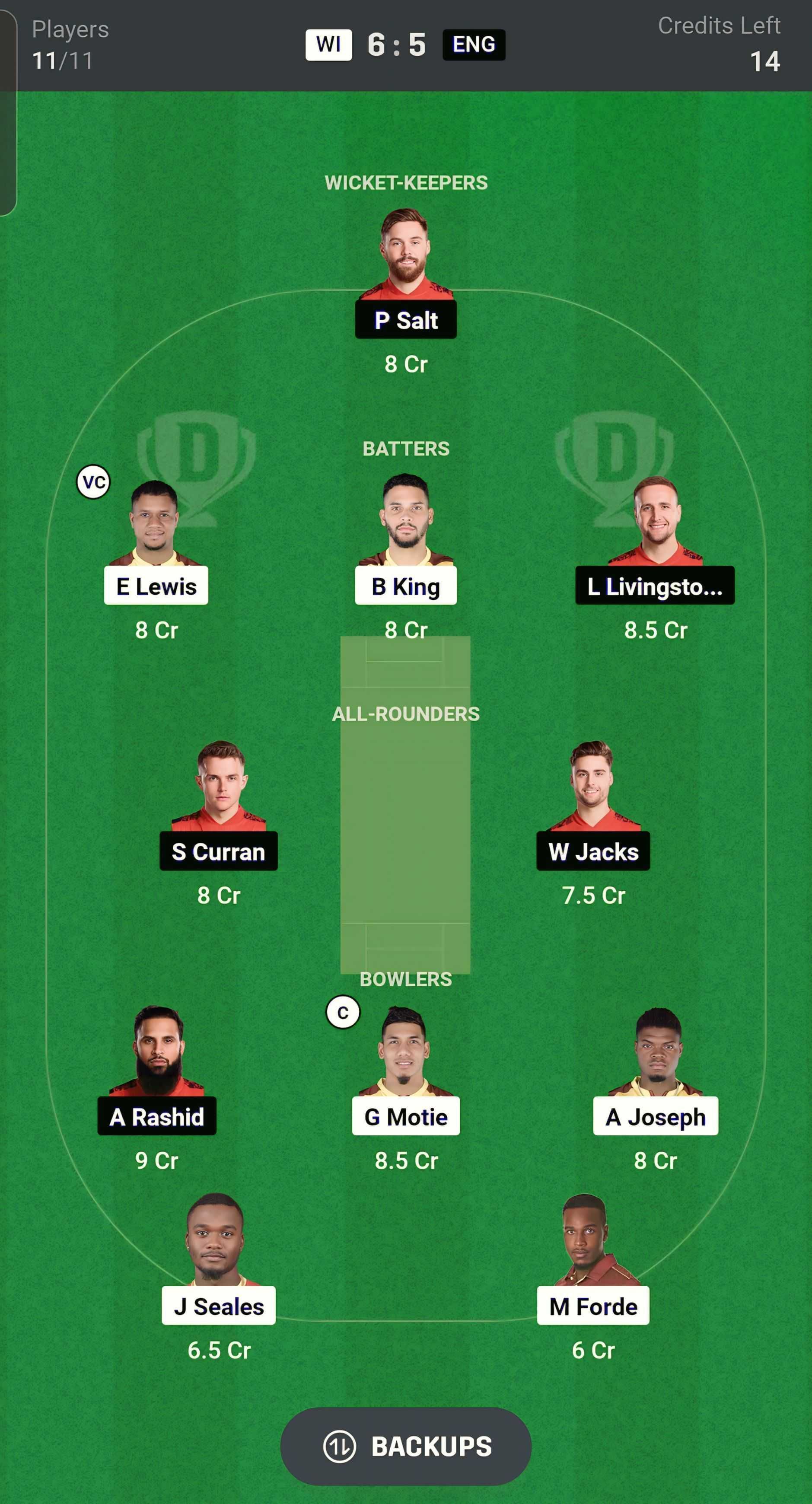 WI vs ENG match captain and vice-captain choices