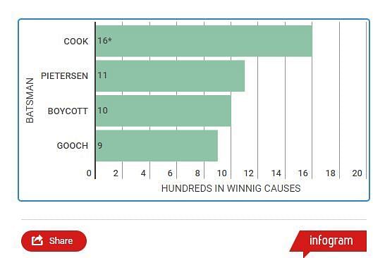 Only Cook has better numbers in winning causes among the players listed on top, with 16 hundreds coming in such a scenario.