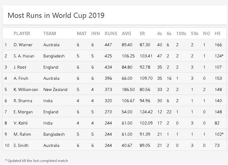 Virat Kohli's delightful 67 off 63 balls took him into the Top 10 list for Most Runs in the World Cup.