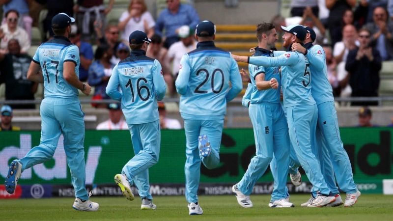 Jonny Bairstow, Jason Roy, Joe Root, Eoin Morgan (c), Ben Stokes, Jos Buttler (wk), Moeen Ali, Chris Woakes, Adil Rashid, Jofra Archer, and Mark Wood.