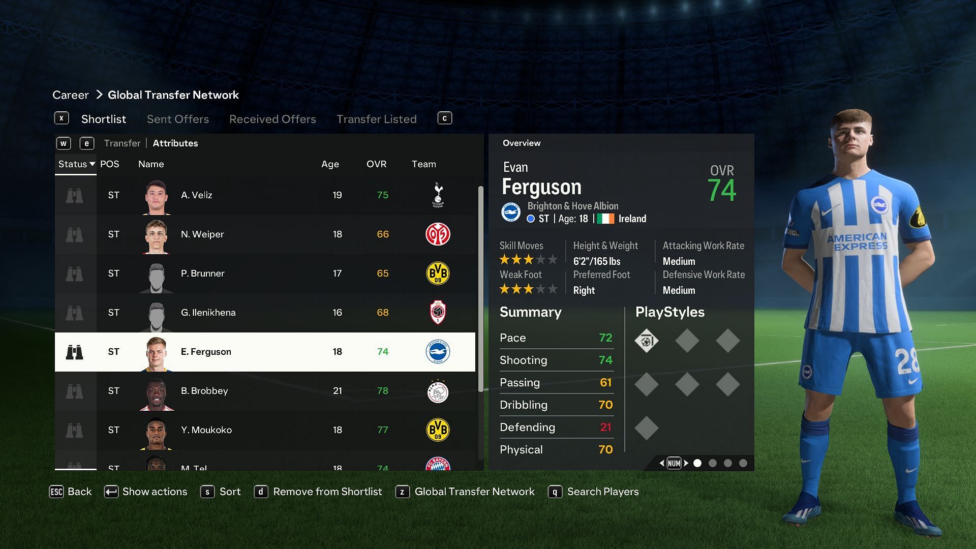 Evan Ferguson has been displaying his prowess in the Premier League for Brighton, and he performs extremely well whenever given an opportunity. The Irish striker could be a solid option for the role of a striker in Career Mode.