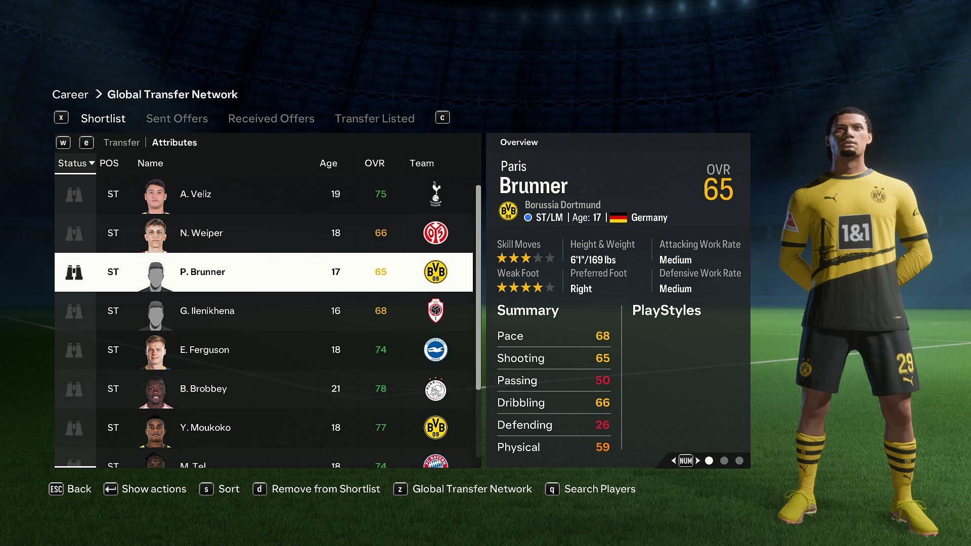 An incredible player to sign when working with limited funds would be Paris Brunner. The upcoming talent is among the many youngsters signed with Borussia Dortmund.