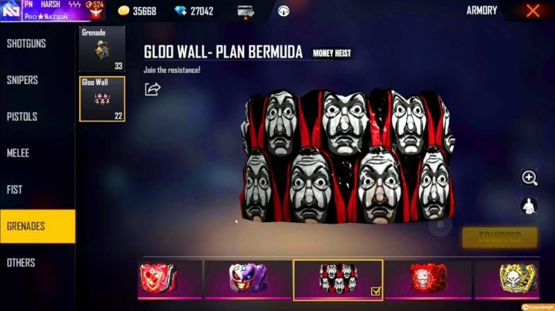 The Plan Bermuda gloo wall skin is one of the rarest and best gloo wall skins in Free Fire. It was launched during a special event when Garena collaborated with the popular Netflix web seriesa: Money Heist.
