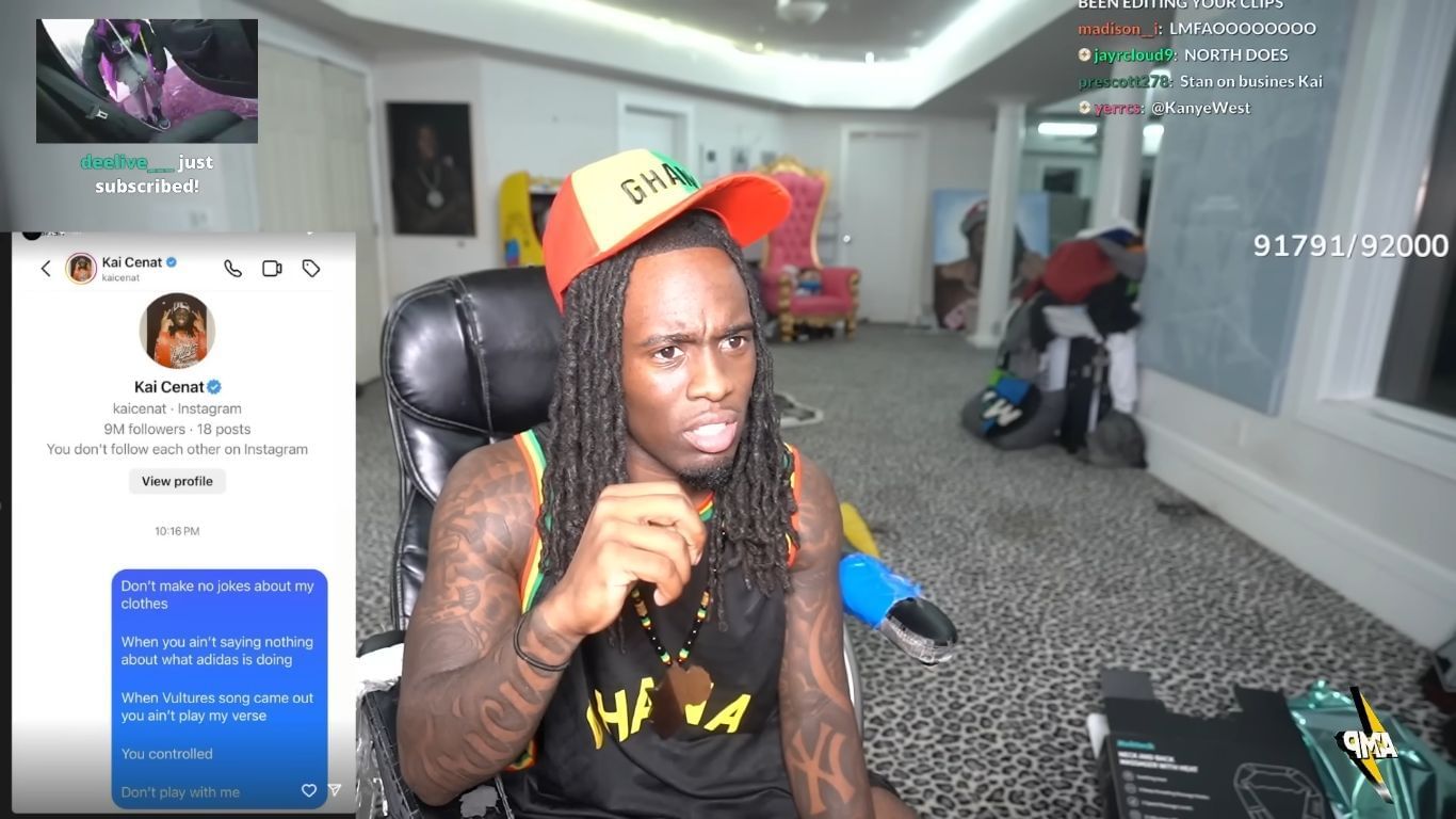 Kanye likely saw Kai's reaction and messaged him via Instagram, accusing the Twitch streamer of trolling his clothing line. Furthermore, Kanye suggested that Kai was being manipulated and also criticized him for not reacting to his verse in Vultures.