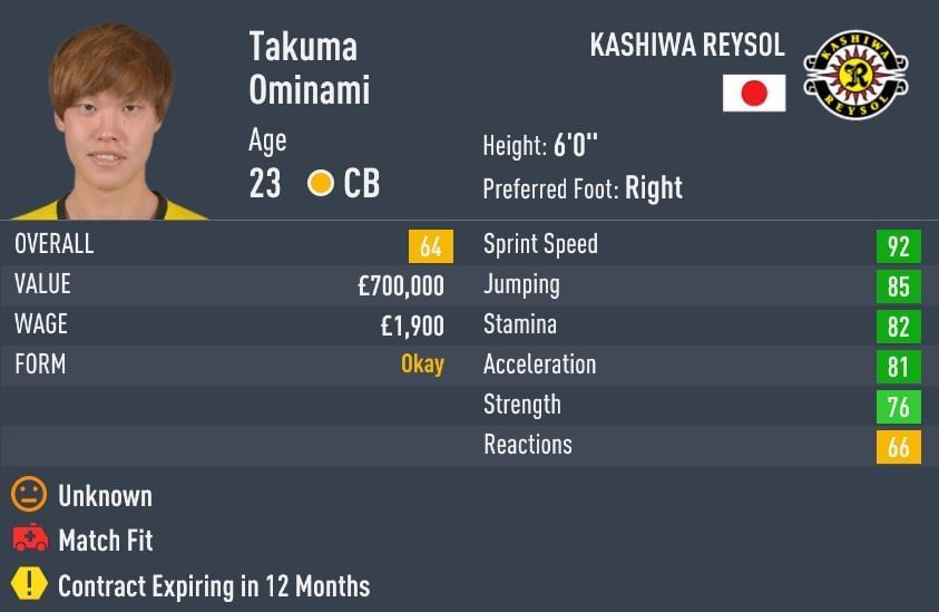 Takuma Ominami is the first Asian footballer and third fastest CB in the game. The 24-year-old Japanese national is one of the fastest players in the Japanese first division. He is not as agile but makes up for it with his pace. Like Haliti, Ominami suits lower league teams as his overall is not the highest.