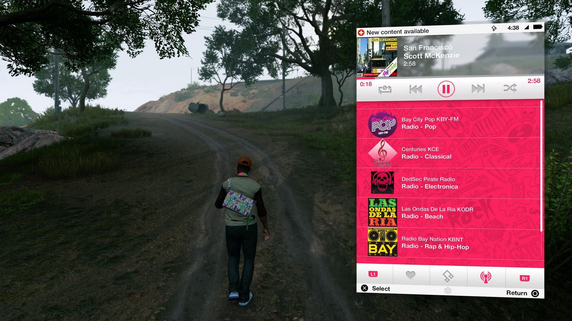 Arguably one of the series' best features, the songs in the game and the radio stations can be tuned in to at any time via Marcus' phone. Simply, pull up the Media Player app, and tune into a radio station of your choice. Additionally, you could select from the various songs being played around different parts of the map.