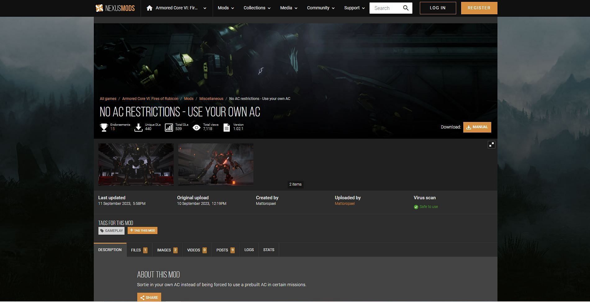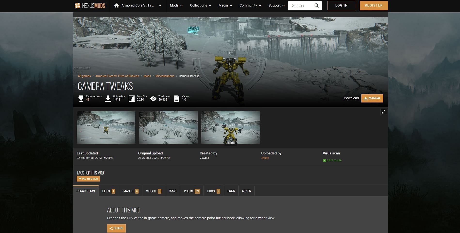 The community has embraced this mod with open arms. A wide camera perspective helps you to recognize threats around your character quickly. In a title like Armored Core 6, where action is all around you, a wider look at the game world can be quite advantageous.
