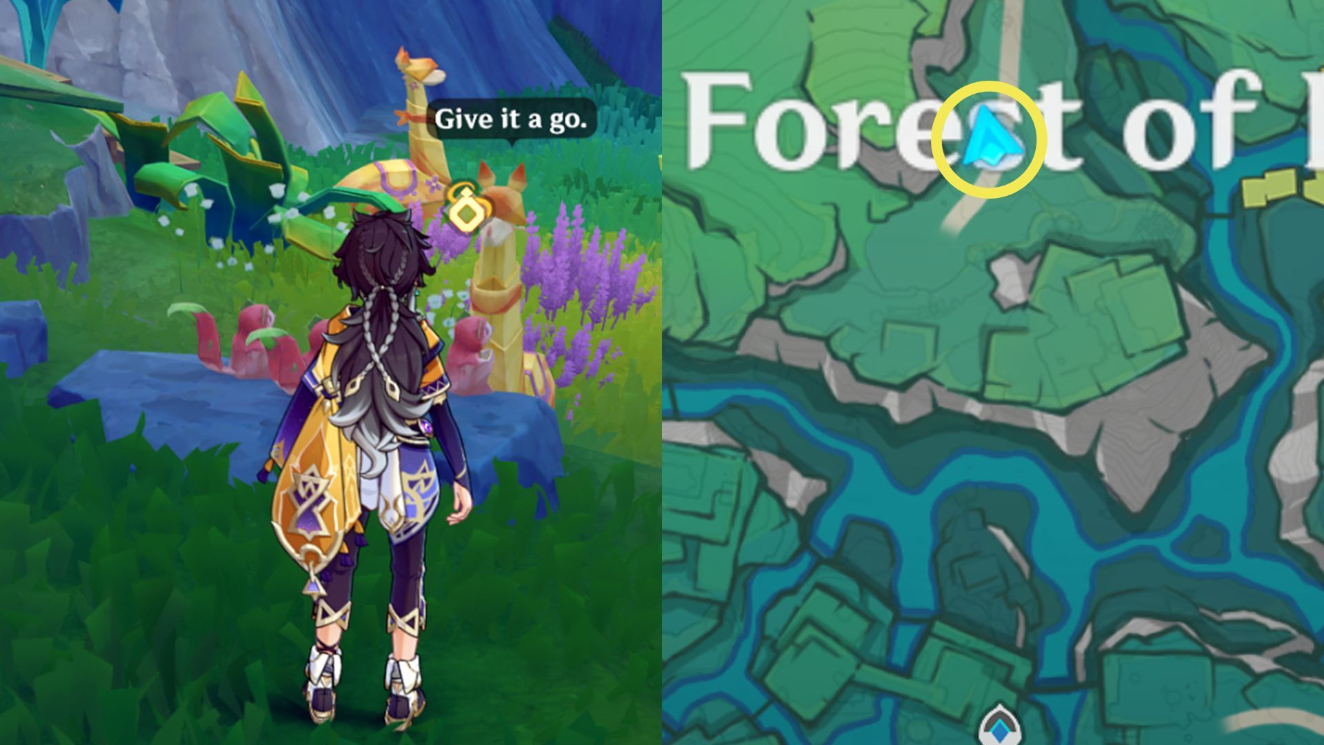 To solve this puzzle, climb up the highest cliff in the Forest of Blessings and interact with the alpaca. After doing so, connect yourself to the magical thread in the alpaca's tail, and move the alpaca in the directions it asks you to. Once you follow all the directions correctly, you can claim a Precious Chest as your reward.