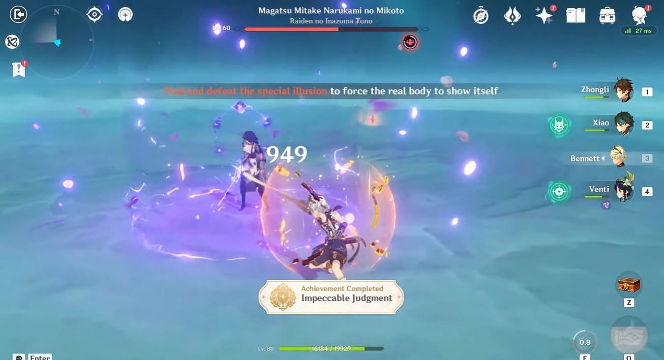 You must complete Raiden Shogun's Story Quest Act 2 to unlock the new weekly boss 'Magatsu Mitake Narukami no Mikoto.' During the fight with the enemy, there is a time when Raiden Shogun will form multiple illusions.
