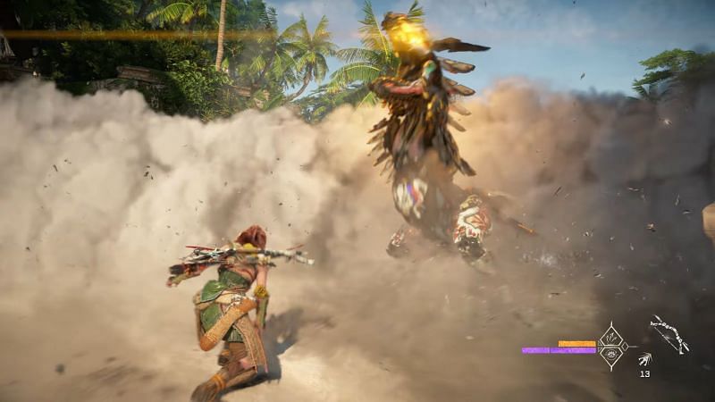 The gameplay reveal saw Aloy using a smoke bomb to escape a Clawstrider. It remains to be seen how much of this can be used in the general gameplay of Horizon Forbidden West.