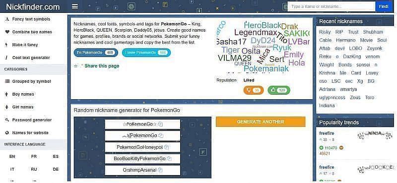 Players can enter the name of their choice and then pick one from the list of suggestions. Players can also browse the website for some name recommendations if they do not have anything specific in mind.