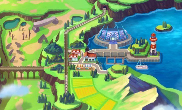 It's not a Pokemon game if there isn't a lighthouse! On the far northeast of the island, there is a small town which has a lighthouse, a few buildings and what looks to be a Water Type Gym. The railroad which is present all over Galar seems to pass through this town and into the caves.