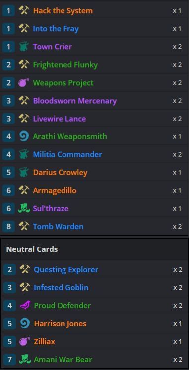 There have been many variations of the deck going around. Some have even tried combining it in a Rush/Bomb Warrior package. This deck can also be played as a variant of Control Warrior, one of the most popular deck archetypes in Hearthstone.