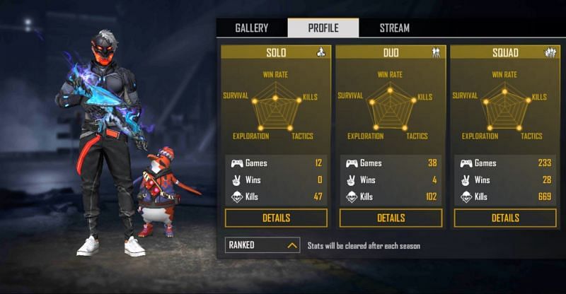 When it comes to the duo mode, the internet star has played 38 matches and has emerged victorious in 4 of them, making his win rate 10.52%. He has eliminated 102 opponents in these matches with a K/D ratio of 3.00.