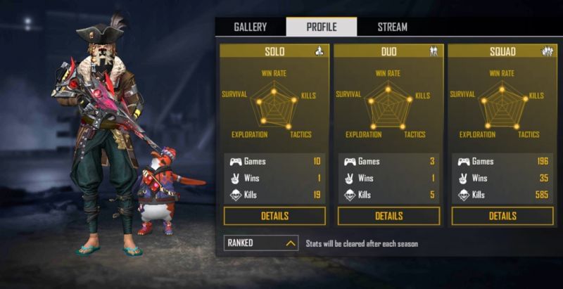 The YouTuber has played 2535 duo games and has secured 404 victories, making his win rate 15.93%. In the process, he has registered 7701 kills at a K/D ratio of 3.62.