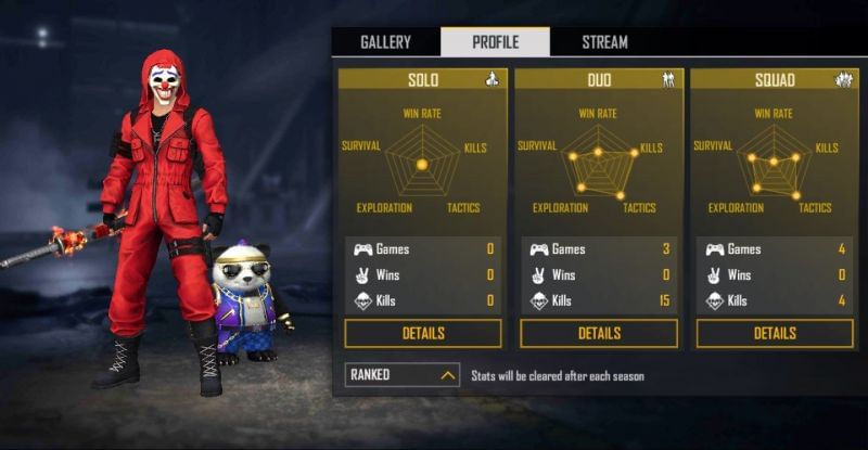 The streamer has participated in four squad games and three duo matches in the ongoing ranked season. He has accumulated four and 15 frags, respectively.
