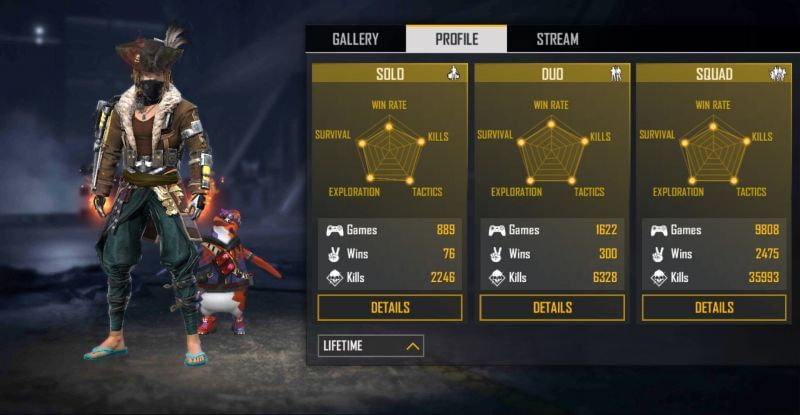 The content creator has also played 126 duo games and has secured 14 victories, translating to a win rate of 11.11%. He has secured 317 kills in these matches, with a K/D ratio of 2.83.