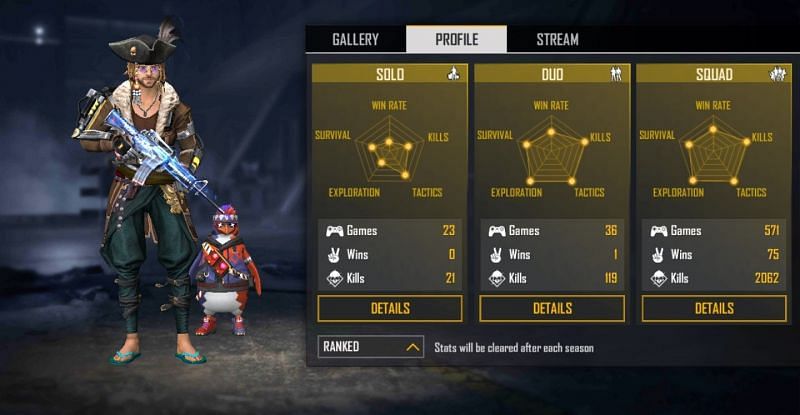 Lastly, the YouTuber has also won 76 of the 889 solo matches with a win percentage of 8.54%. He has secured 2246 frags at a K/D ratio of 2.76.