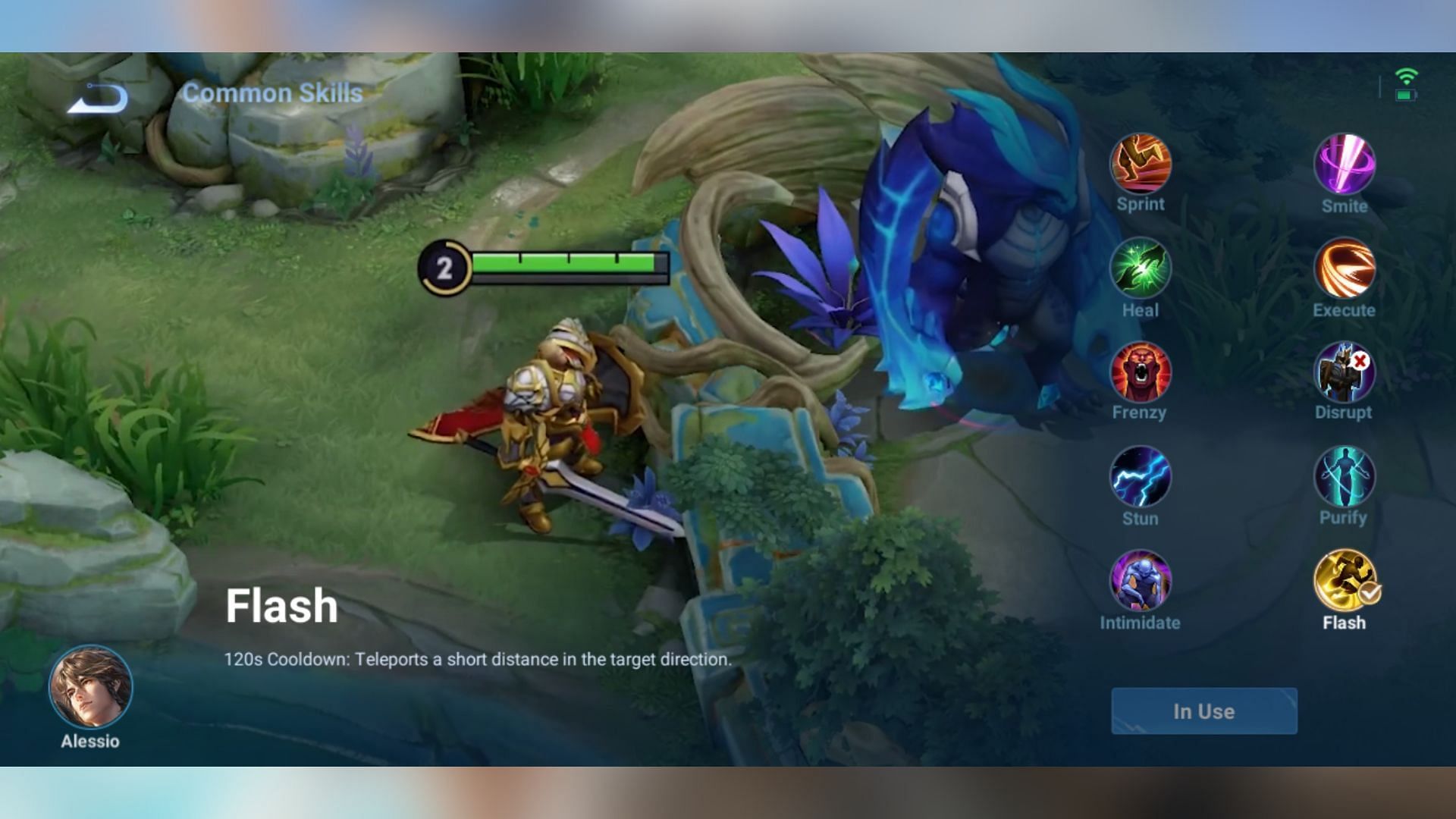 Flash is the best battle spell for Alessio build in Honor of Kings. It has a 120 seconds qcooldown period. With this spell, Alessio can quickly escape enemy Heroes during the early game.